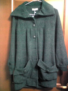 写真じゃグレーのコートに見えるけど、本当はグリーンなの。いや青かな?エメラルドグリーンとでも言っておこう。