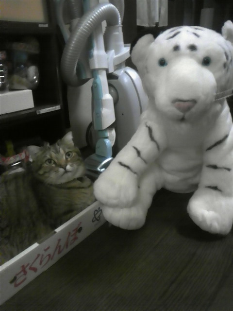 ホワイトタイガーのぬいぐるみ。